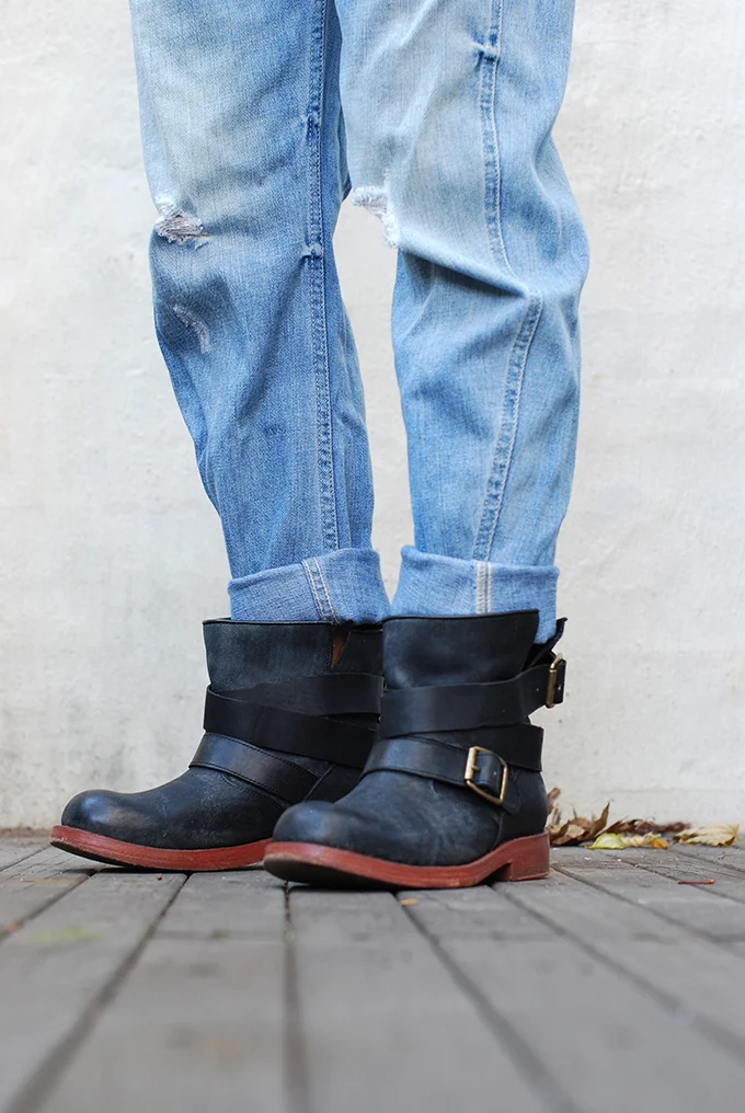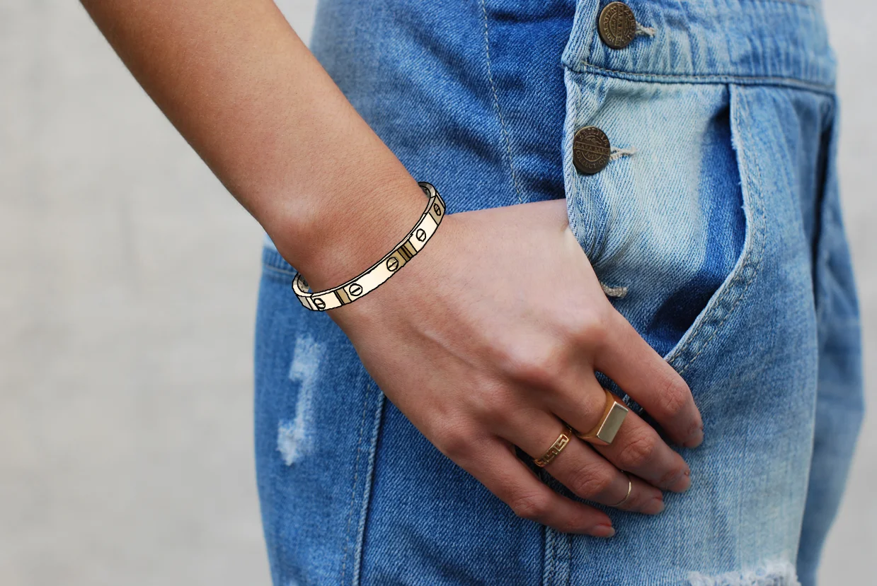/Yes, I have purple hair and yes, I’m still in love with these overalls. It’s officially Fall and I’m taking this look to the other side of the tracks. Ankle boots and an imaginary Cartier Love bracelet is exactly what I need to pull off rough and tough chic. I don’t think I’ll ever have the extra paper to spend on this beautiful piece of jewelry, but I will put this on my Christmas list from now until the end of time.